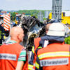 Während die Verletzten mit den Hubschraubern zur medizinischen Versorgung ausgeflogen wurden, hatten die Feuerwehrleute die belastende Aufgabe, den Toten aus dem Wrack zu bergen.