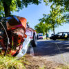 Das Motorrad hatte beim Aufprall die gesamte Front des Autos abgerissen, war anschließend gegen die erst kürzlich installierte Leitplanke gekracht und hatte sich dort überschlagen.